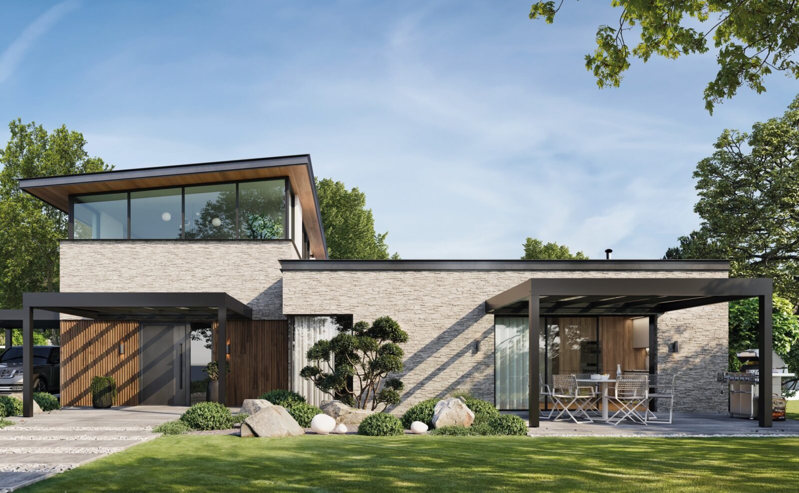 Tack vare sin flexibla konstruktion passar CUBO-EZIE lika bra som uterumstak som stilfull entré eller carport – och förhöjer husets arkitektur med en modern, harmonisk helhet. Med sin tidlösa design och genomtänkta detaljer förvandlar det varje uteplats till en plats att leva på, inte bara under sommaren utan större delen av året.
